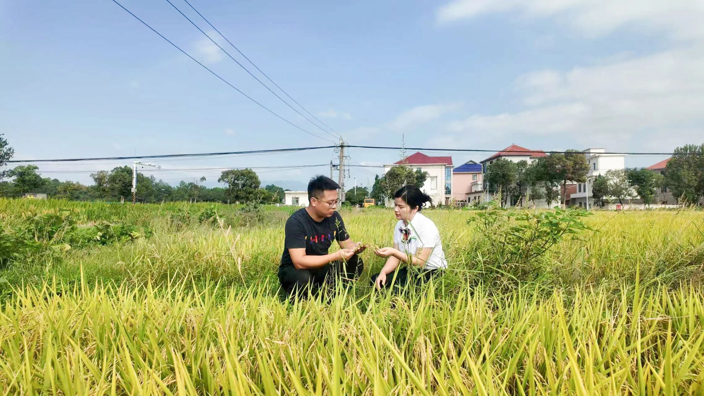 ▲安义农商银行客户经理深入水稻专业合作社承包的稻田了解丰收情况。