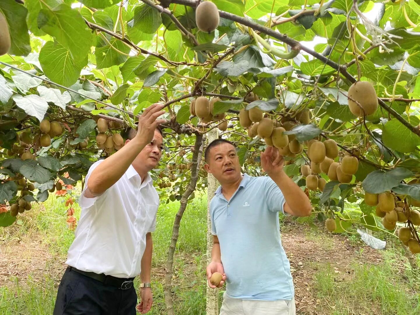 ▲奉新农商银行工作人员现场调查猕猴桃挂果采摘情况。