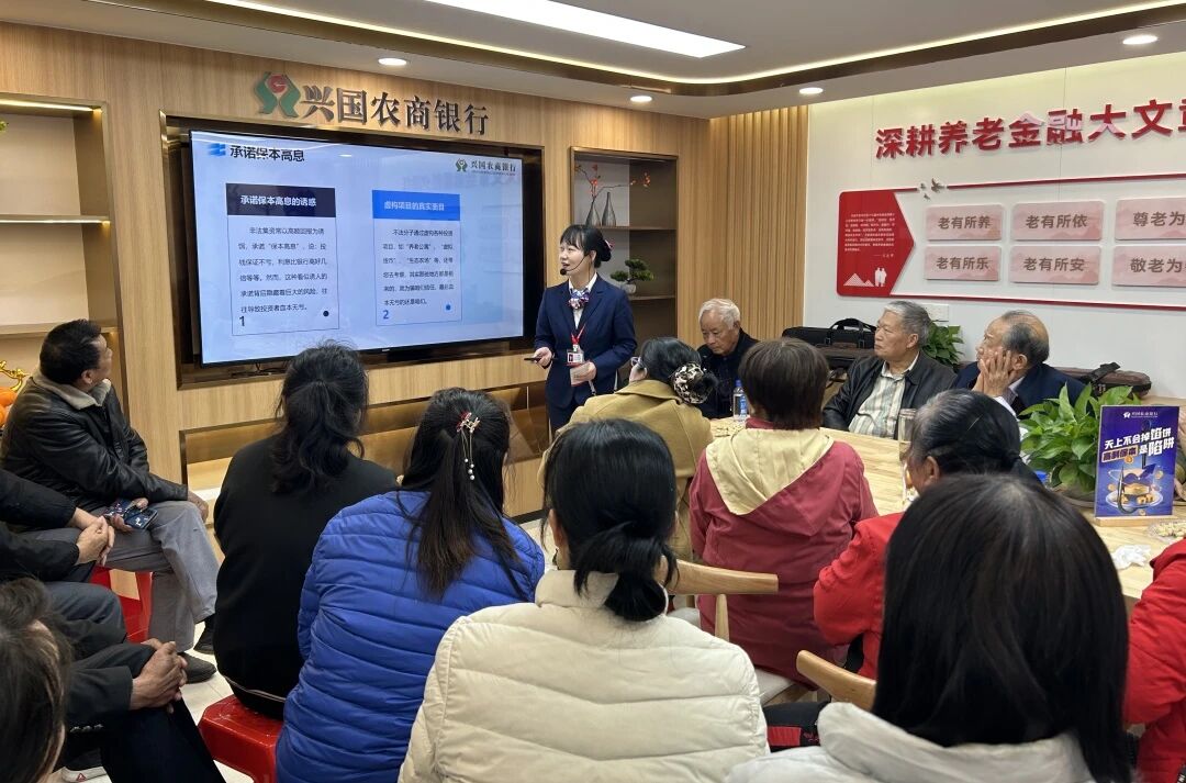 ▲兴国农商银行银龄驿站为社区老年人举办防范非法集资宣传教育活动