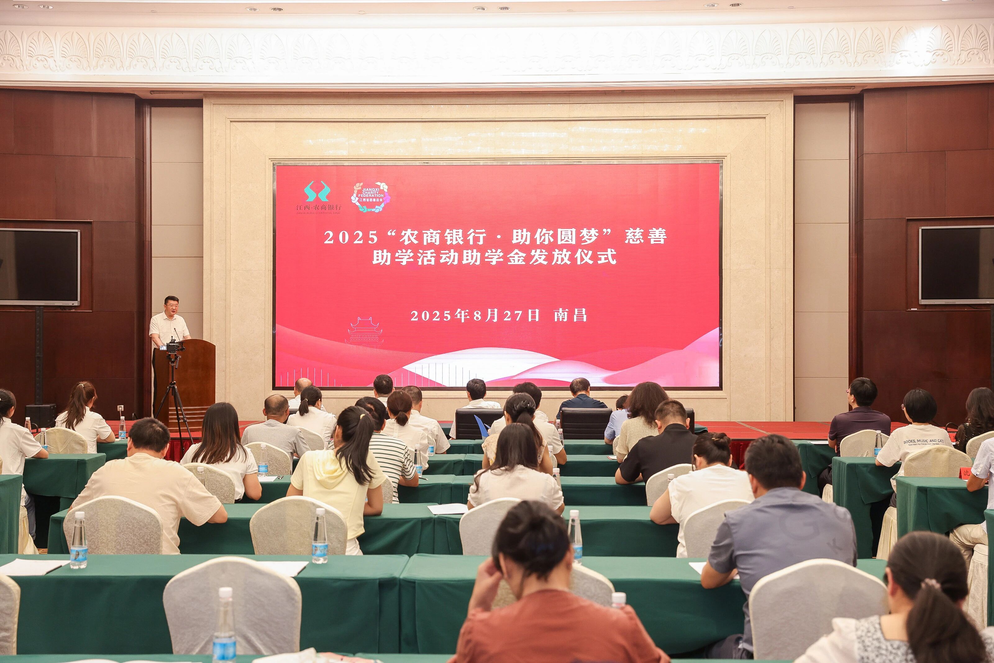 8月27日上午,2025“农商银行·助你圆梦”慈善助学金发放仪式在南昌举行。江西省慈善总会会长汤建人,江西省民政厅党组成员、副厅长,省慈善总会副会长李晖,省慈善总会监事长万小根,江西农商联合银行首席运营官拟提名人选、百福慈善基金会理事长袁秀峰出席仪式。江西农商联合银行部分干部员工、省内11个设区市和各县(市、区)慈善会负责同志、受助学生和家长代表、志愿者代表以及新闻媒体代表等参加发放仪式。